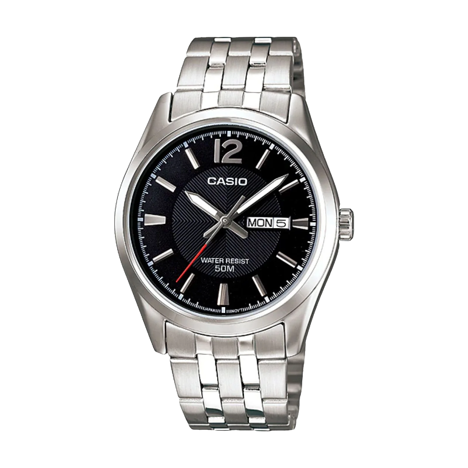 Este reloj mezcla lo clásico con lo funcional: esfera clara, estilo limpio y ese calendario con día y fecha que te salva sin que lo pienses. Perfecto si querés un reloj que hable de tu estilo, no solo que dé la hora.