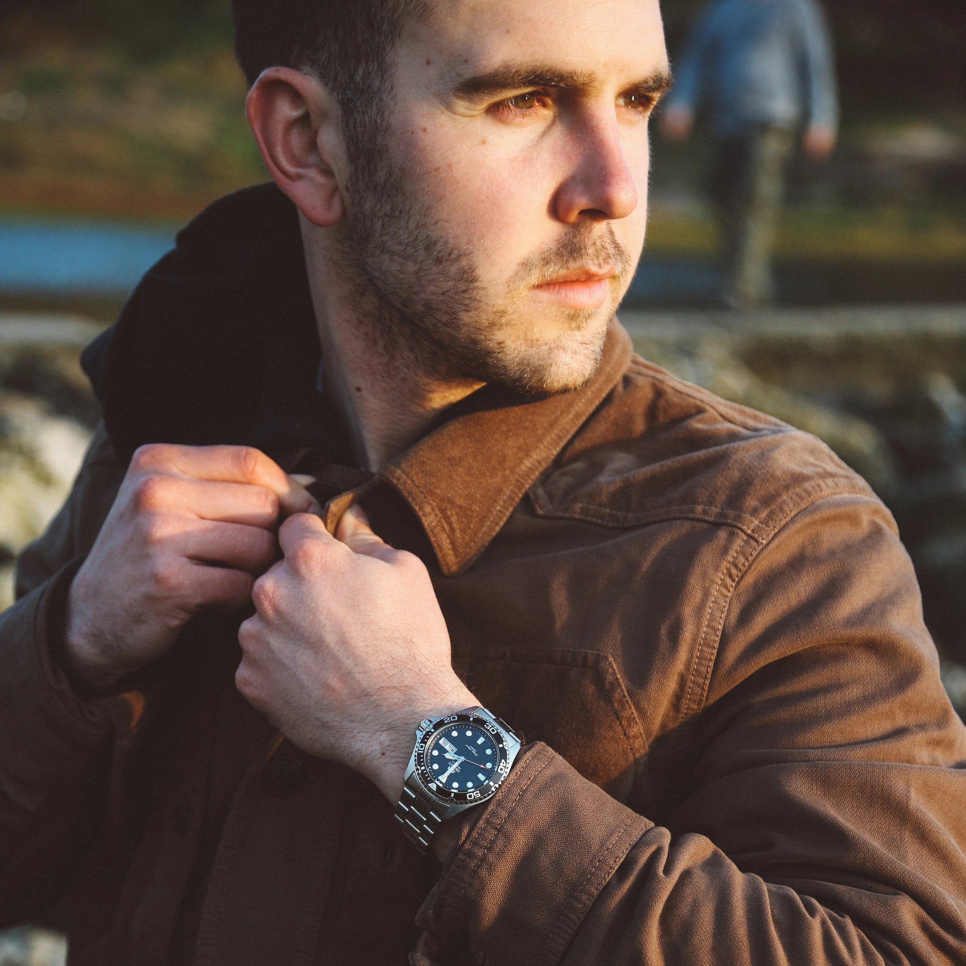 Una esfera negra potente, bisel giratorio y 200 m de resistencia al agua: este reloj es para los que buscan combinar estilo urbano y espíritu deportivo. Desde el escritorio hasta la playa, sin cambiar de accesorio. All terrain